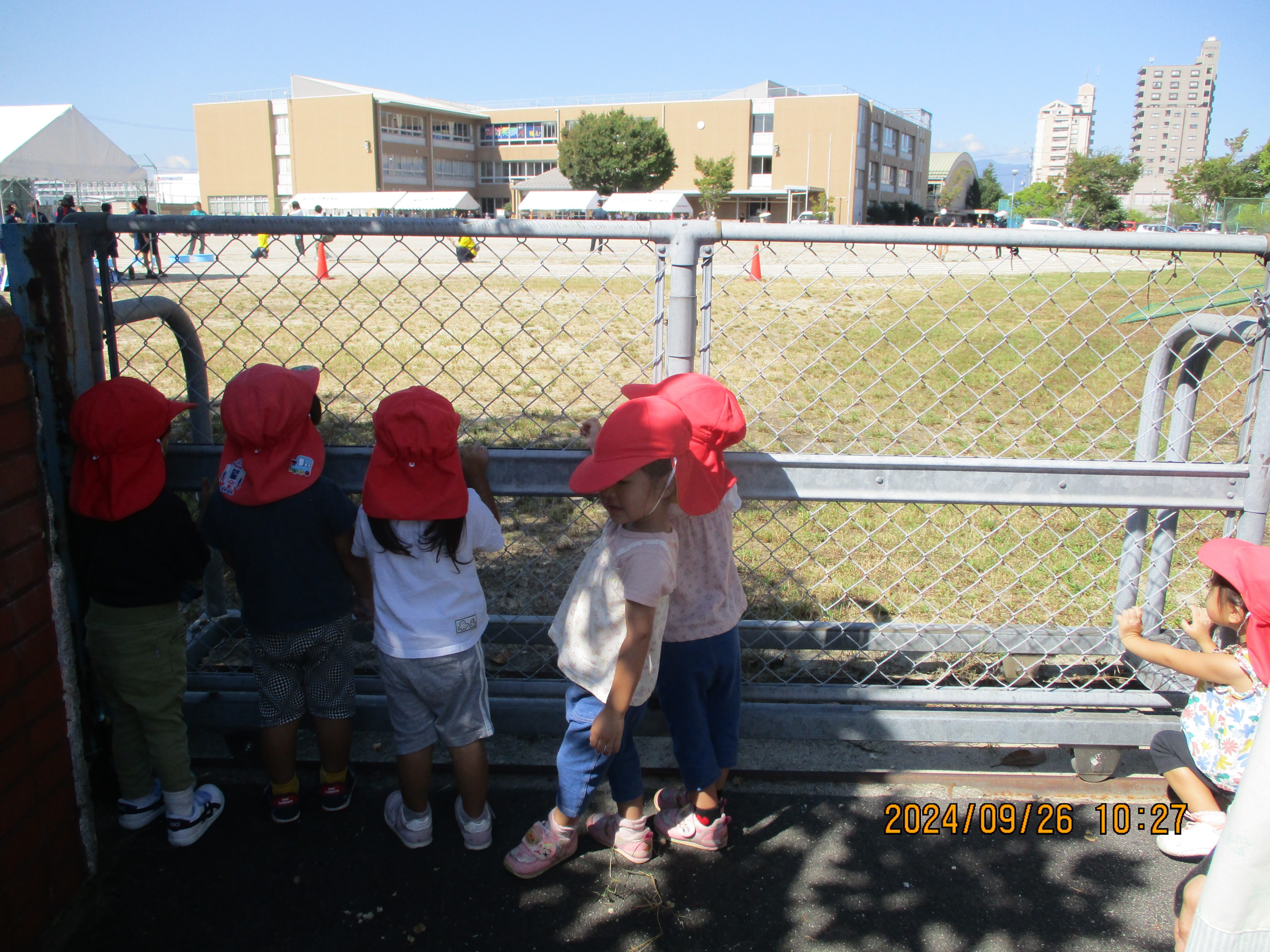 公園に行く前に、園の近くで行われている運動会を見に行きました😊