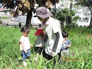 公園で先生と一緒に体を小さく丸めていましたよ。